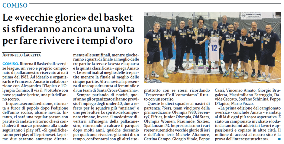 Tutto il mondo Basket Oversize League Comiso sui quotidiani, sui giornali, in Televisione e nel mondo della Comunicazione